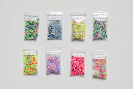 フルーツポンチのチップ調合は初の試みで、お客様にチップを配合していただいて実際にアクリル板に使用します。参加されたお客様の数だけバリエーションが集まり、多彩な組み合わせになりました。