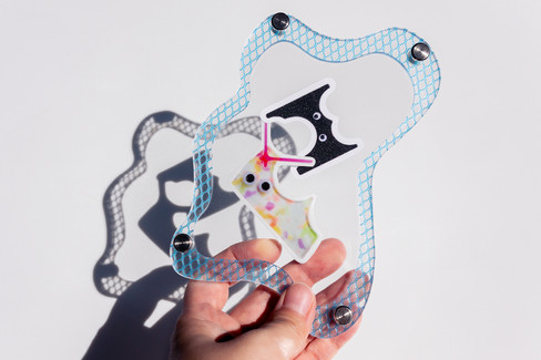 グリッターやレース、廃液などを封入している珍しくてカラフルなアクリルを使用しています
