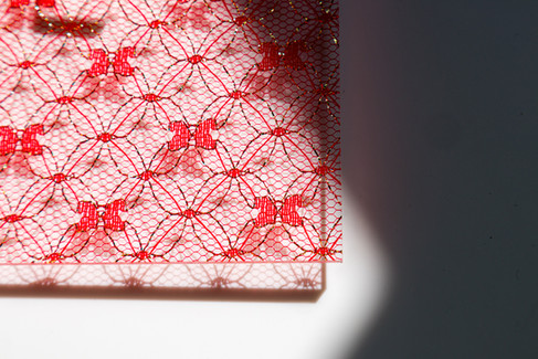 赤い糸と金色で円を描いたレース封入 3~4mm厚
